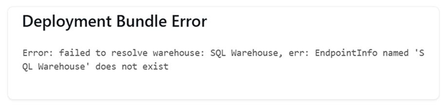 Lookups search for already-deployed resources, not resources defined in your bundle. During deployment, resources are created sequentially. If your job references a warehouse that hasn't been deployed yet, the lookup fails—even though the warehouse is defined in your bundle.