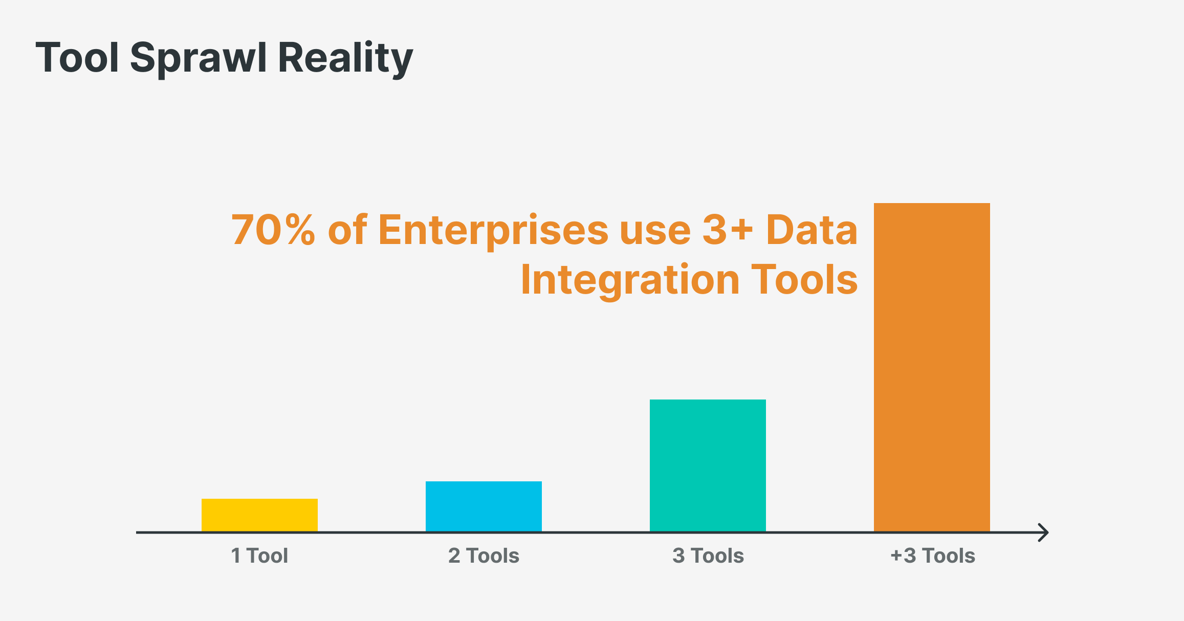 Many companies run multiple ingestion and orchestration tools in parallel. According to Gartner, 70% of enterprises use more than one data integration tool, and half use three or more. The result: higher costs, slower delivery, and less flexibility. You end up paying just to move data, before you get any value from it.