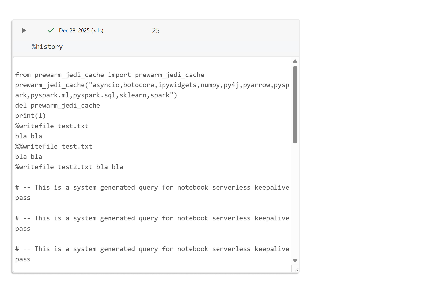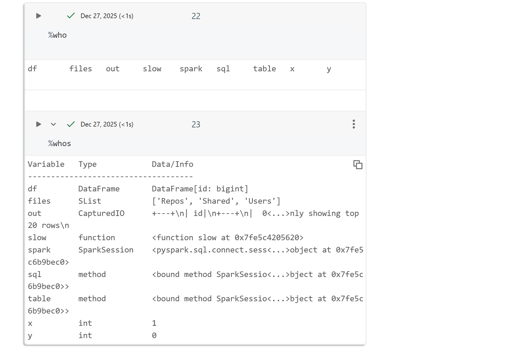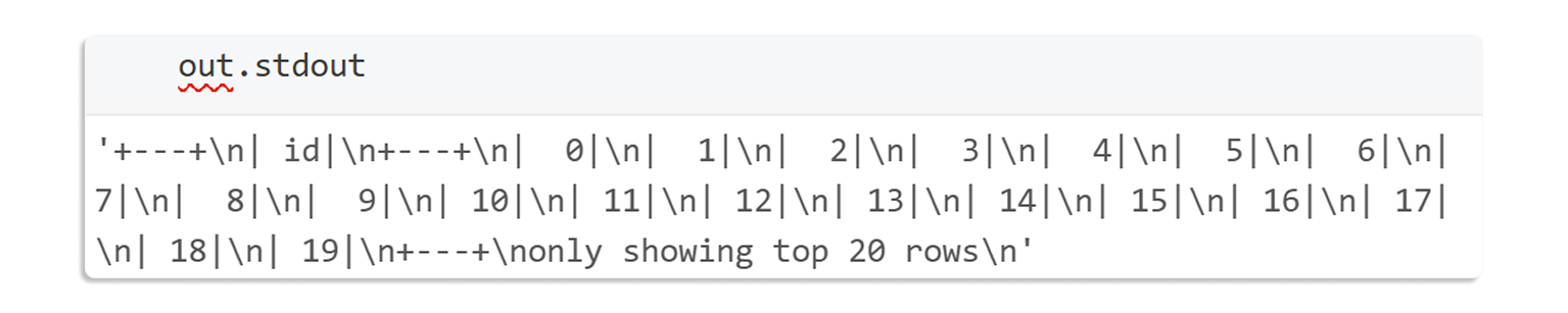 %%capture out df = spark.range(1_000_000) df.show()