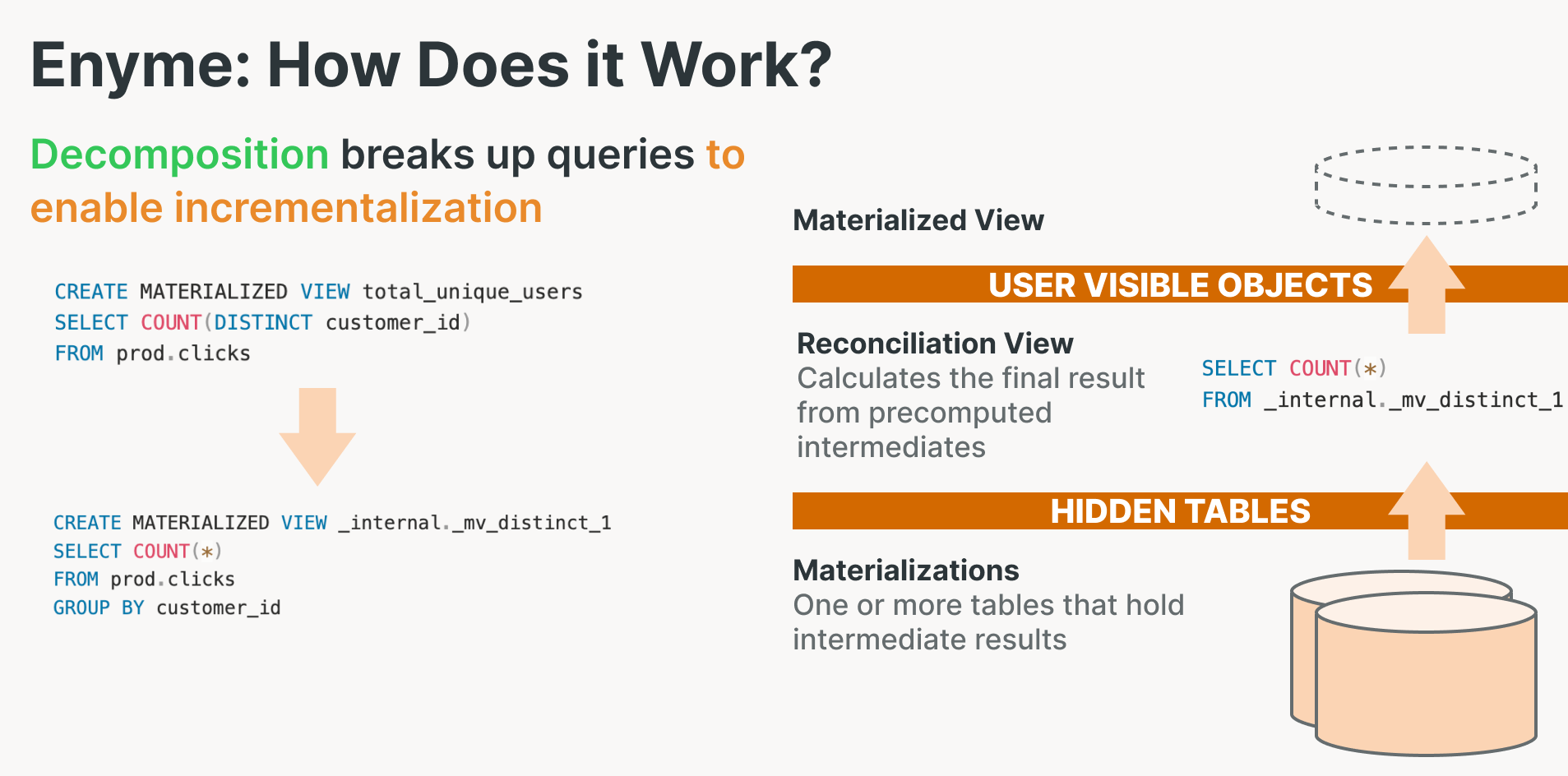 "Is it just another Delta table?” Yes and no. While materialized views use Delta format (so you can consume them however you want), they're powered by Enzyme, Databricks' secret weapon for intelligent incremental updates.