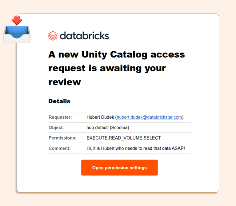 Unity Catalog's "Access Requests" feature provides a ready-made solution for streamlining permission requests. Here's how to implement it: