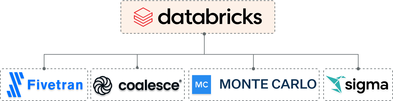 Alongside Databricks, our tech stack features Fivetran, Prophecy, Montecarlo & Sigma.