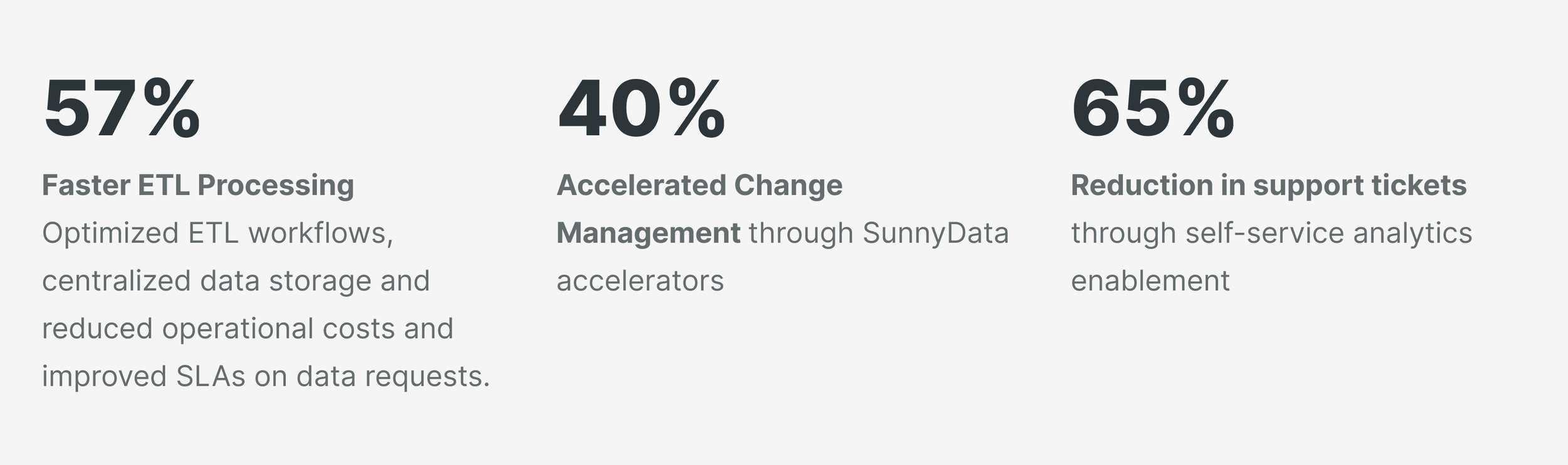 SunnyData developed a repeatable pattern for data ingestion and transformation through the various layers (bronze, silver, gold) to provide a standard consumption layer for new use cases across business functions.