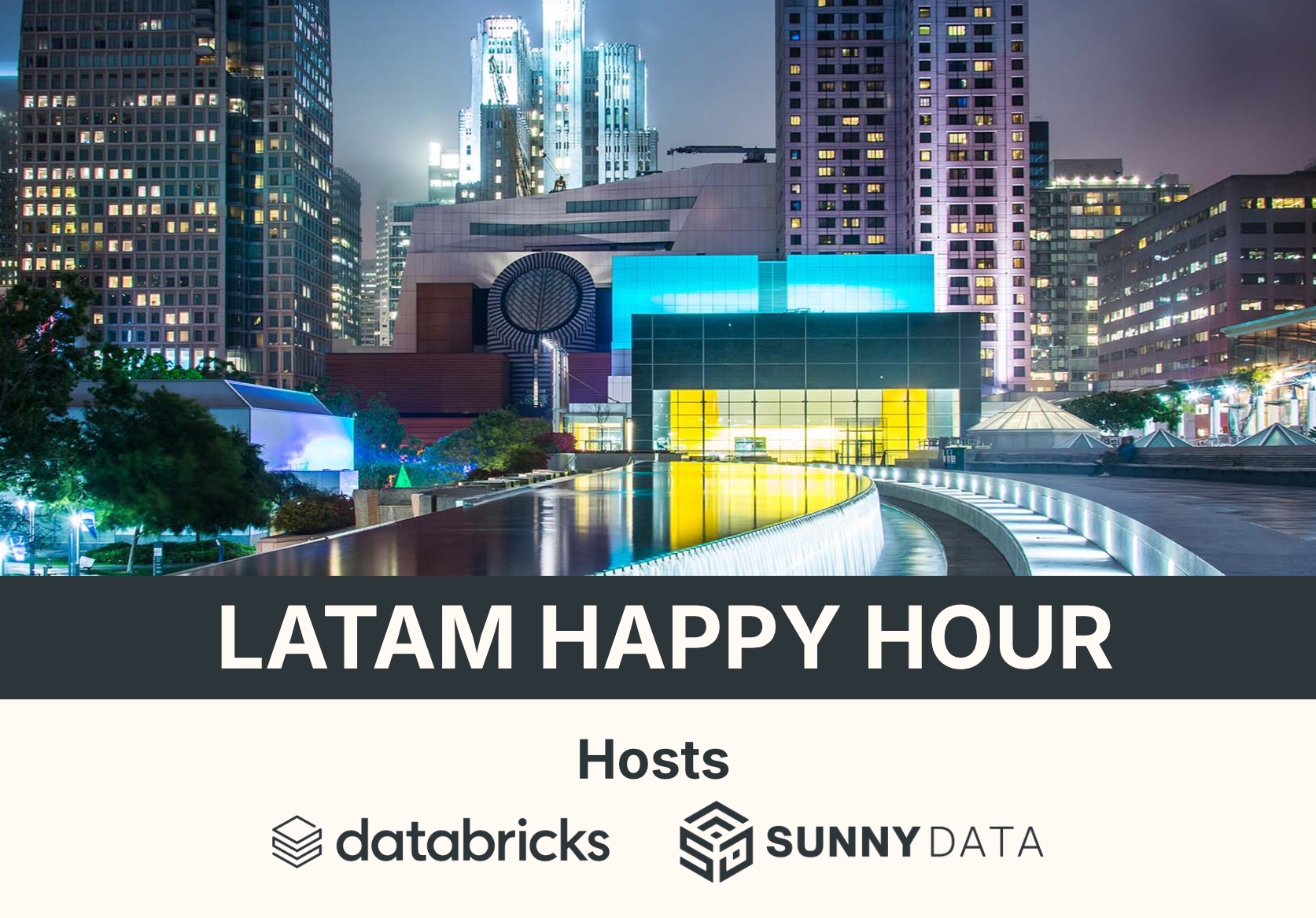 A Databricks-hosted happy hour sponsored by SunnyData, bringing together LATAM leaders, during DAIS to connect and strengthen relationships.